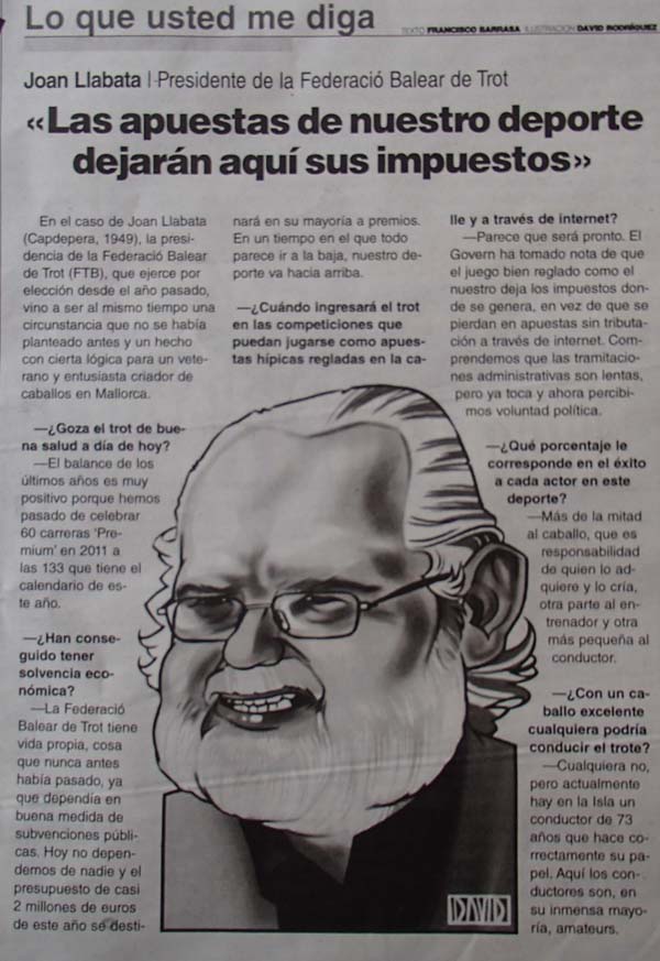 L’amic Joan Llabata, com a president de la Federació balear de Trot, ha estat entrevistat a la secció “Lo que usted me diga” del diari Última Hora.