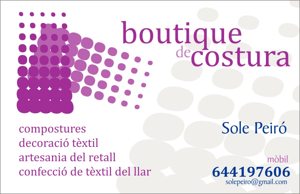 En la Boutique es poden trobar articles de merceria, roba de casa, articles de decoració tèxtil i eines per realitzar manualitats. A més de les compostures, que ja ve realitzant des dels inicis, la costurera també fa confeccions de tot tipus, adaptades als gustos dels clients.