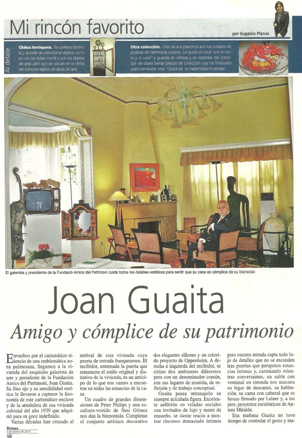 Amb una amplia secció fotogràfica la secció mostra les cases de personatges mallorquins, fent especial ressò a la decoració i interiorisme de la vivenda. L’article fa un recorregut per les estances plenes d’obres d’art.