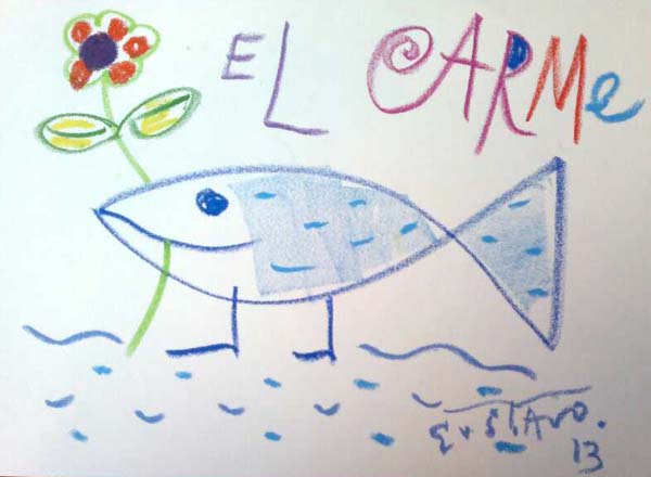 La comissió de festes del Carme disposa d’un logo creat per Gustavo. El pintor va fer al seu estudi un dibuix representarà la Comissió encarregada d’organitzar la festa més popular de Cala Rajada.