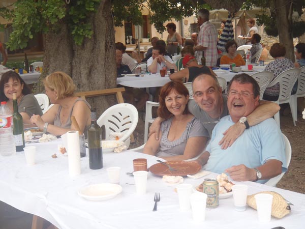 La Coral s’Alzinar té dues fites gastronòmiques indefugibles: la paella del mes de juliol i la llampugada del mes d’octubre. I la primera, una any més, la van complir el passat dissabte, dia 13, amb l’assistència de devers vuitanta cantaires, músics acompanyants & partners. L’equip ede cuina habitual, encapçalat per Joan Llabata va enllestir 10 k d’arròs, amb les “noses” corresponents, i, segons els comentaris que es pogueren escoltar, el resultat van ser dos arrossos fets en dues paelleres distintes però amb gust idèntic fins al més mínim detall, i, cisa encara millor, d’una qualitat digna de les millors arrosseries del país. No hi falta la representació institucional, encapçalada pel batle Rafel Fernández. La mica de brusca matinal no aconseguí apaivagar els ànims i tot va sortir rodó.