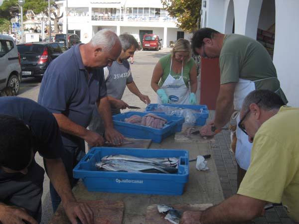 El passat dissabte 4 d’octubre, ja hi havia un bion trull pel moll. Tocava fer netes les llampugues i filetejar-les. Una feina laboriosa que es fa am l’ajuda dels col·laboradors habituals i que crea molta expectació entre els turistes i visitants que passegen per la zona portuària.
