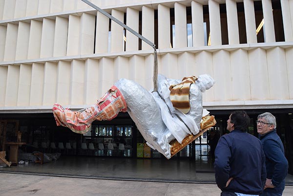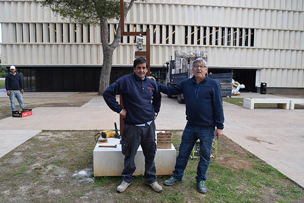 Dia 15 de març era el dia senyalat. En Sebas de la brigada ha complit l’edat reglamentària per jubilar-se i amb el muntatge de les escultures de Moisès Gil ha fet el seu darrer dia de feina.