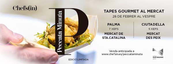 PALMA – MERCAT DE SANTA CATALINA amb els xefs Miquel Gelabert de Ccan march restaurant; Tomeu Martí Restaurante Arume; Víctor García de La Fortaleza Cap Rocat Hotel; Tomeu Torrens Celler Can Amer; William Tétard Hotel-Restaurante Ses Rotges***, Marc Fosh Restaurant Simply Fosh i Elisabeth Julienne que ve des de Menorca. Amb vins de Bodega Biniagual i cerveses artesanes de Beer Lovers Mallorca. Preu tancat de 30€.