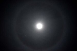 Ahir, amb la lluna fregant la plena, poguérem captar aquest espectacular halo des de Cala Rajada.