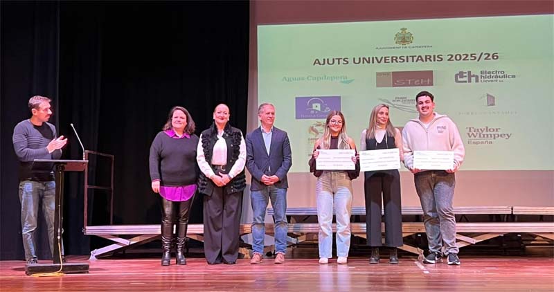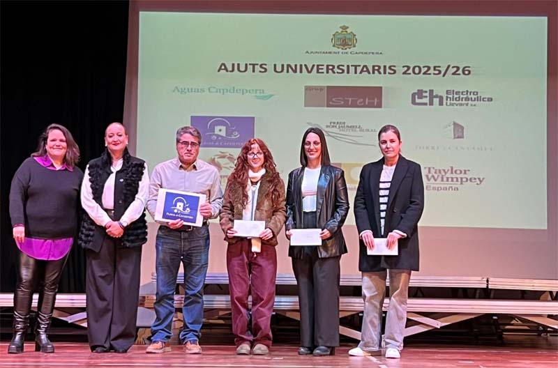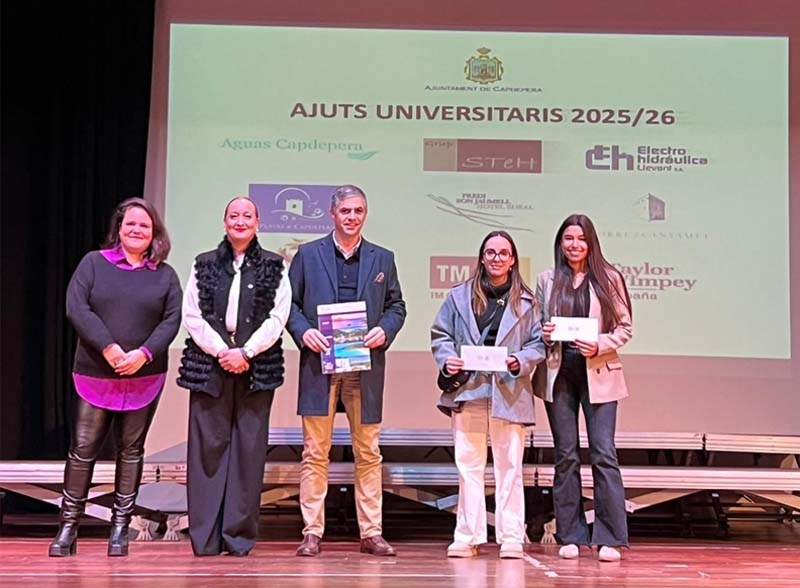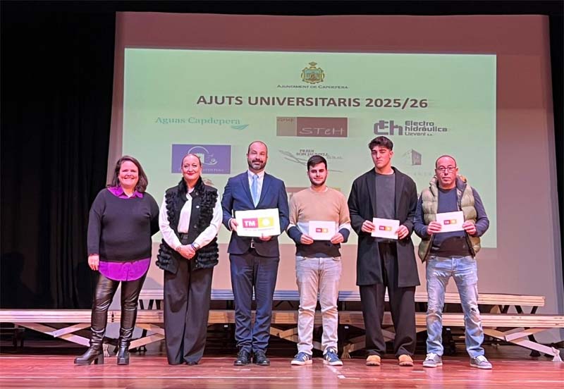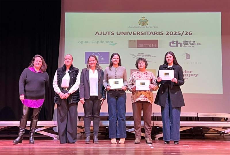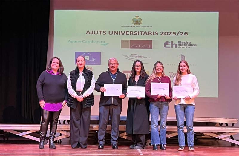 L’Ajuntament de Capdepera ha celebrat , dia 22 de desembre, l’acte de lliurament dels Ajuts Universitaris, una iniciativa que té com a objectiu donar suport econòmic a l’alumnat del municipi que cursa estudis superiors. Aquests ajuts són possibles gràcies a la col·laboració directa de diverses empreses locals, que un any més han demostrat el seu compromís amb la formació i el futur dels estudiants de Capdepera.