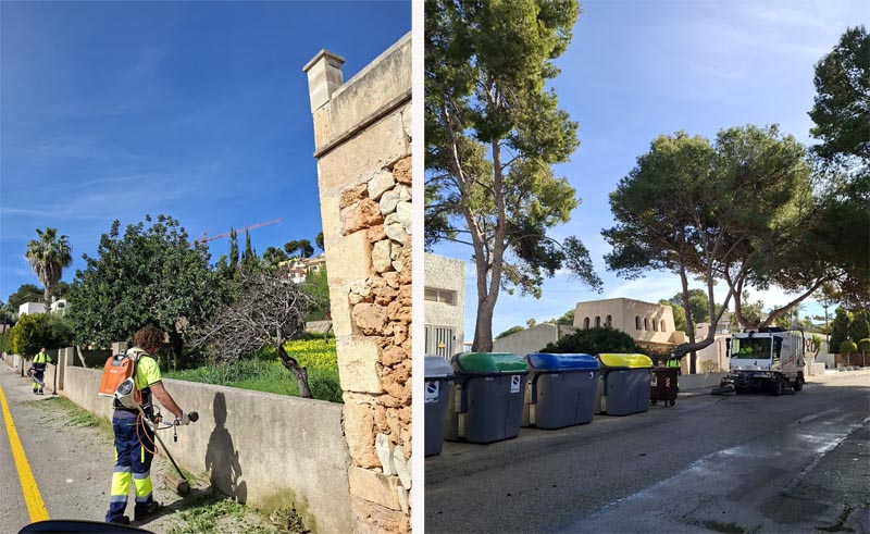 La campanya inclou la neteja i manteniment de papereres i contenidors, la retirada de ferratines i grafitis, el baldeig intensiu dels carrers, i l’eliminació de males herbes en voreres i espais públics. La primera zona, a Sa Font de sa Cala es va iniciar el 16 de febrer i finalitza avui.