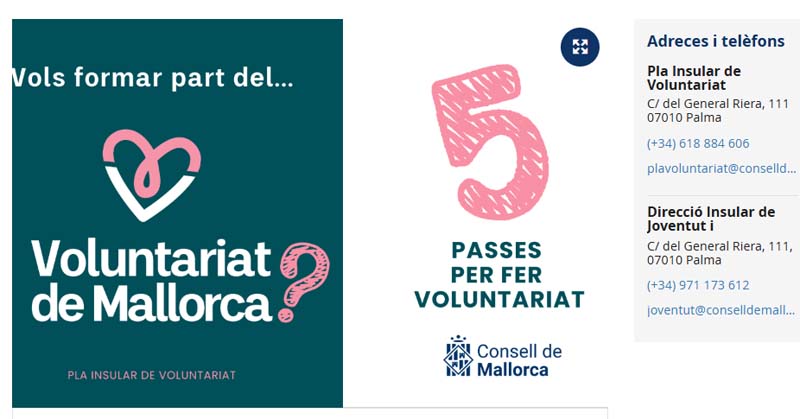 Si formau part d’un ajuntament interessat en promoure el voluntariat en el municipi o d’una entitat que necessita suport i voleu més informació, podeu escriure a l’adreça electrònica plavoluntariat@conselldemallorca.net.