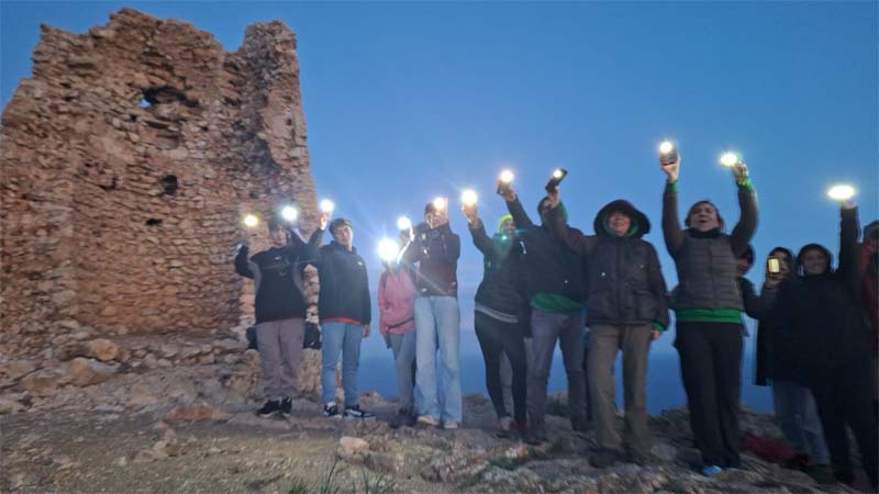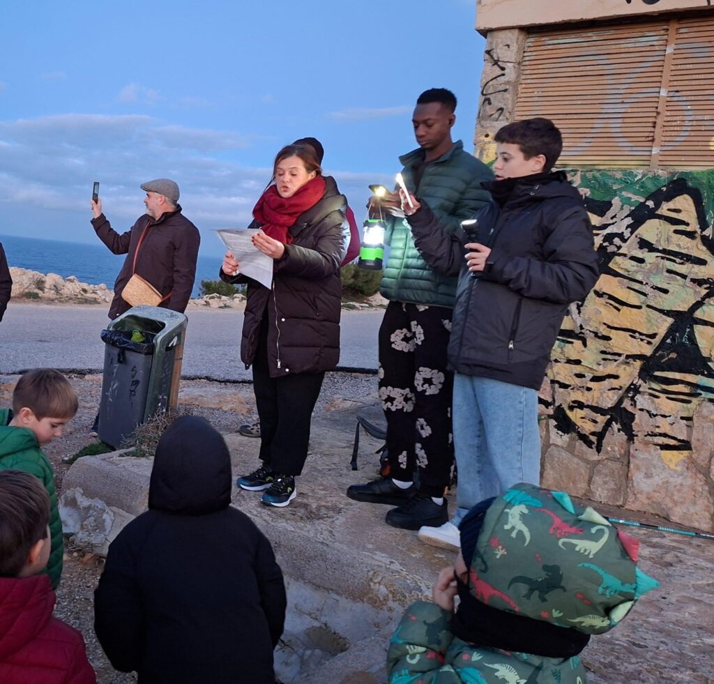 A la Talaia de Son Jaumell, també es trobà un petit grup. A més dels responsables, també participaren alumnes i professors de l’IES Capdepera que llegiren el manifest i gaudiren d’una preciosa posta de sol.