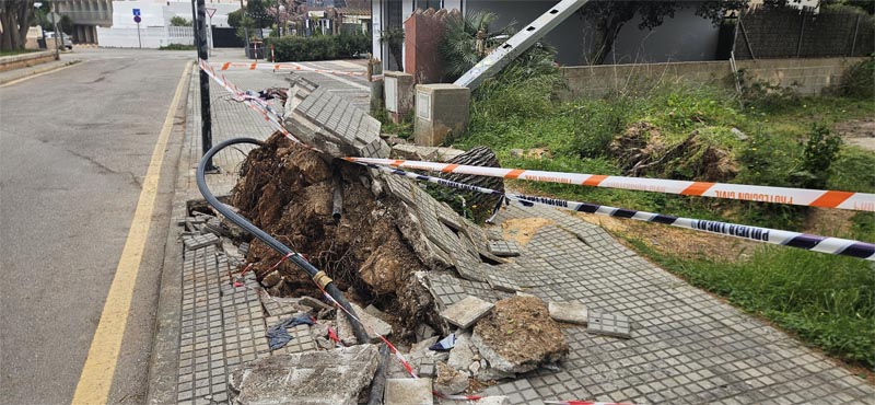 A la zona de Son Moll també cal una intervenció urgent a la zona de l’aparcament on va caure un pi i va tombar un pal del cablejat elèctric i aixecà la vorera.