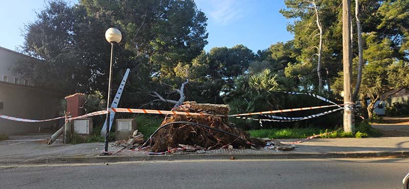 Diumenge 15 de març va fer un dia d’hivern. Forts vents que superaren els 100 km/h, concretament 107. La tramuntana bufà fort. Es suspengueren els trajectes marítims. A Capdepera poguérem veure moltes branquetes per mig dels carrers però, afortunadament, els incidents es limitaren a la caiguda de dos arbres. Un a Son Moll, que teniu a les imatges i un altre a la Pineda en un indret privat. Res greu.
