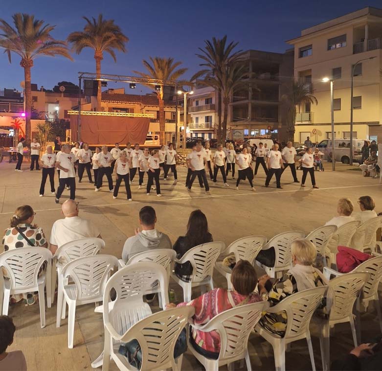 Ja fosquet el grup de ball del Club Sol Naixent va realitzar una exhibició de ball en línia a la plaça dels Pins i tot seguit estava programada una exhibició de Capoira, l’art marcial d’origen brasiler-africà que combina ball, música i acrobàcies.