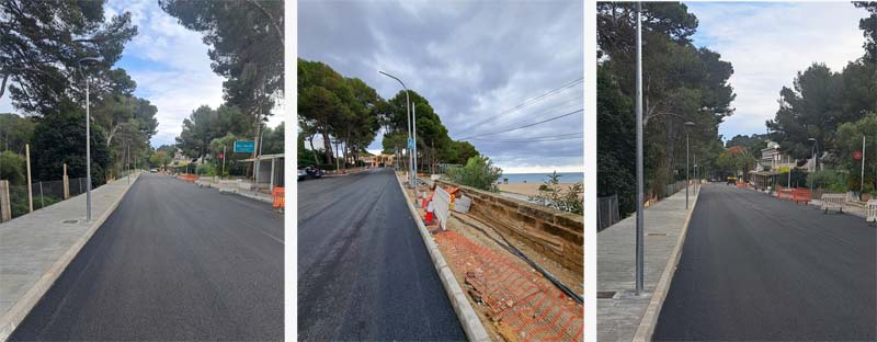 Resten alguns serrells pendents d’enllestir, com ara la part de les voravies de davant la platja, així com els punts de recàrrega elèctrica que, si no anam equivocats, també han d’anar en aquesta zona. També falta pintar les marques vials i plantar els arbres que ha anunciat l’ajuntament, també davant la platja. Sembla que es compliran, en qualsevol cas, els terminis establerts per a la seva finalització, prevista per a final d’aquest mes.