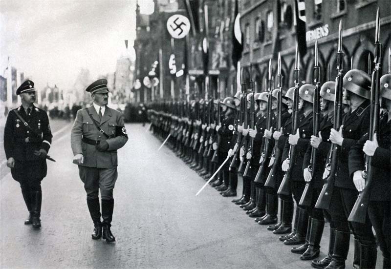 Així com Hitler i el seu exèrcit s’anava apropiant de territoris veïns, la por i l’enveja tensionaren Europa. El dictador alemany, l’italià i l’espanyol es convertiren, respectivament, en führer, duce i cabdill, uns conductors de multituds que portaren el seu país a la guerra i a la destrucció. Allò que distingia aquests dictadors era una insaciable acumulació de poder i el fet d’utilitzar la violència com a fonamental arma política; l’exèrcit fou convertit en la columna vertebral d’una societat militaritzada, on fins i tot els nins participaven en desfilades militars.