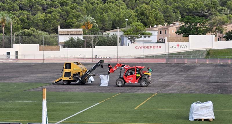 Dia 11 de juny, començà “oficialment” el canvi de la gespa artificial del camp de futbol d’Es Figueral. L’empresa que du a terme la feina té 30 dies per realitzar el canvi però, el regidor d’Esports ens ha comunicat que “vist l’intens ritme de feina dels operaris, penso que estarà acabada dia 5 de juliol o abans, ja que fan molta via”.