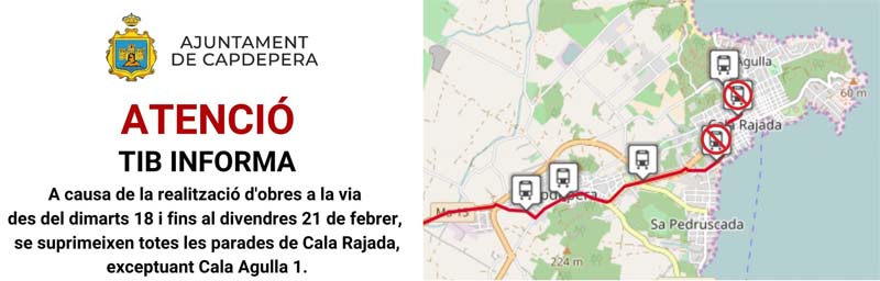 D’altra banda el TIB ha informat de com afectaran els talls de trànsit a les aturades d’autobusos