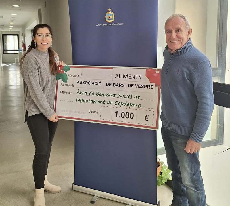 Durant el mes de desembre, Antoni Pastor en nom de l’Associació de Bars Nocturns i Discoteques de Capdepera va fer una donació de mil euros al Departament de Benestar Social de l’Ajuntament de Capdepera. Aquesta donació és el resultat de la recaptació de la barra de l’associació durant la Mostra del Peix Fresc i a la Fira de la Llampuga 2024. El departament de Benestar Social va gestionar i repartir la donació entre famílies usuàries del servei.