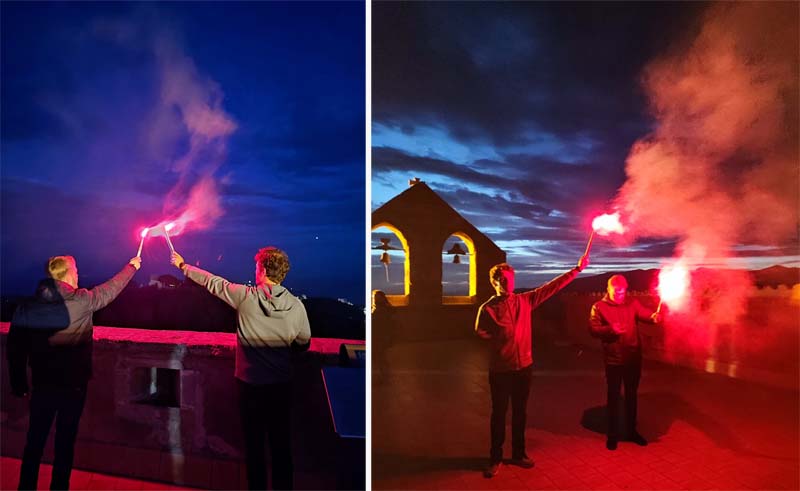 A les 13 hores i a les 18:30 s’encengué la torre de na Pòpia a Sa Dragones i a partir d’aquí s’anaren encenent una rere l’altra quan les torres visualitzaven l’anterior. En realitat, s’ha recreat el sistema tradicional de vigilància i control del litoral de les illes.