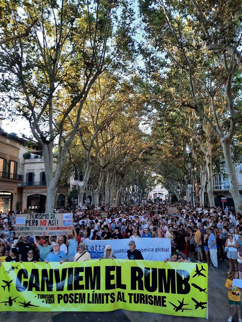 Avui hem pegat un cop damunt de la taula. En plena temporada turística hem sortit a fer nostres els carrers. I seguirem fent feina per afinar les demandes polítiques, organitzar-nos per resistir, evidenciar els impactes i les conseqüències d’aquesta deriva econòmica i social i construir el present i futur que volem perquè són nostresi els volem dignes i justs. Som hereus de moviments socials ecologistes, per la justícia social, de la lluita sindical, de la defensa de la llengua, de les lluites feministes, del moviment local i global contra la turistificació. També d’iniciatives per la profundització de la democràcia com la ILP “Avui per demà” que va acabar en una Llei aprovada al Parlament pel Benestar de les Generacions Futures o l’Assemblea Ciutadana pel Clima que va elaborar propostes pel decreixement turístic amb un alt grau de representació del conjunt de la societat illenca. Moviments socials, lluites i propostes, que demostren fins a quin punt les demandes i reivindicacions són les d’una gran majoria social a les Illes i són cada cop més àmplies i transversals.