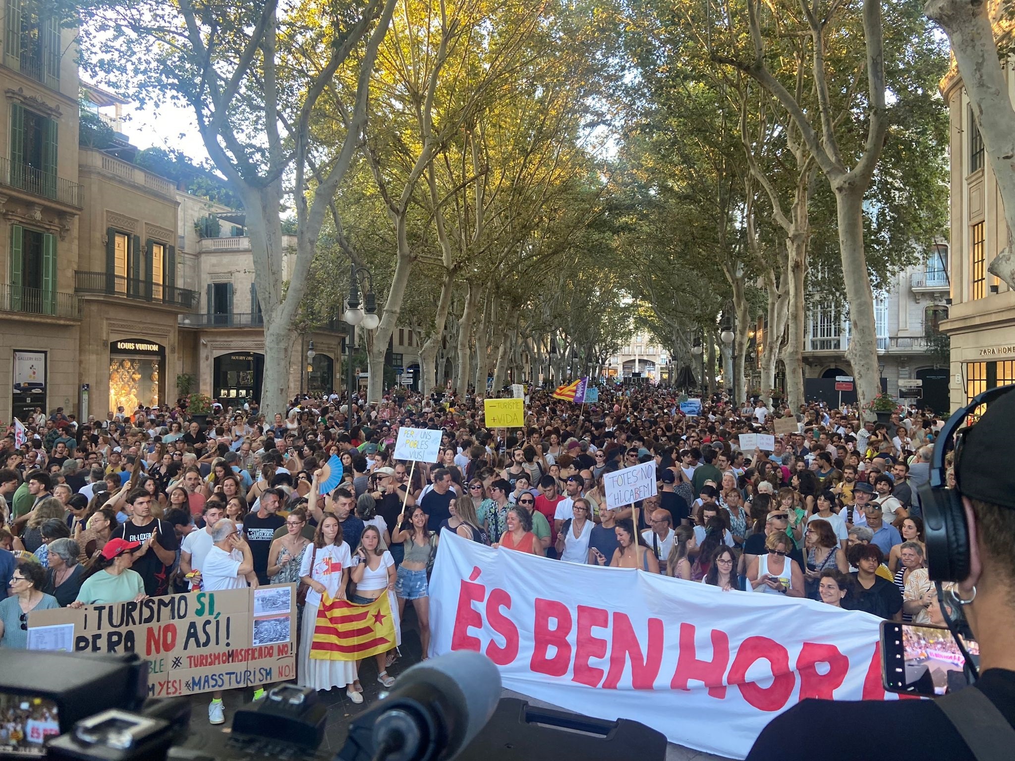 Moltes gràcies a tothom per haver vengut. Ja podem dir que hem estat més de XX mil persones avui! Hem decidit fer història, sortir al carrer, trobar cares conegudes i desconegudes, fer poble, fer país, fer comunitat, perquè la situació que vivim ho requereix i perquè junts sabem que tenim la força per redirigir-la, per canviar el rumb i per això cal començar per posar límits al turisme. A un turisme que ens expulsa, ens precaritza, destrossa el nostre territori, consumeix els recursos que no tenim i ens aboca a la dependència d’un sòl sector econòmic que ens fa una societat vulnerable i sense alternatives.