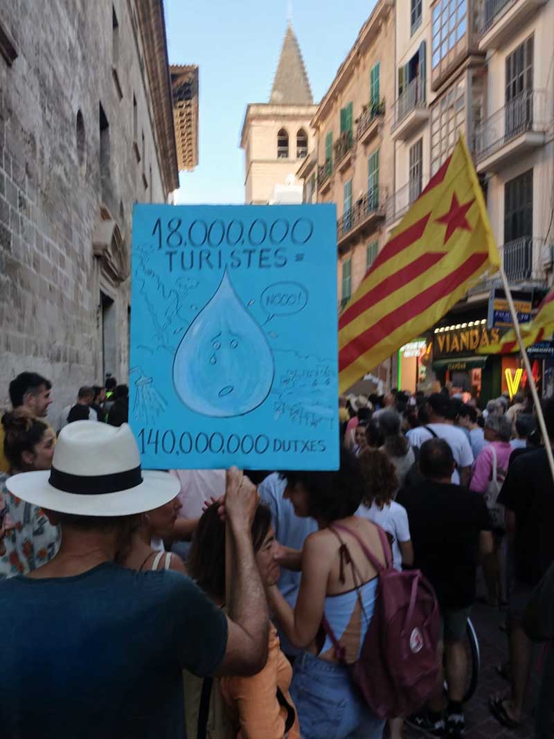 En un context de sequera i crisi climàtica com l’actual el turisme consumeix 1 de cada 4 litres d’aigua de l’illa. Un turista consumeix el triple d’aigua que un resident i un turista de luxe fins a 5 vegades més. Cada creuer amb base al port de Palma
