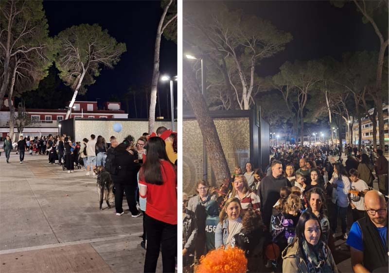 Molt bon ambient, molta participació amb gent disfressada i molta, però molta coa per pujar al tren ( com podeu comprovar a les imatges) que no ha aturat de donar voltes ple de gom a gom.