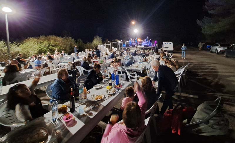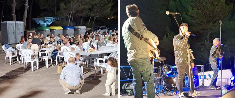 Possiblement la previsió d’una nit freda va atuarar a més d’un, però el cert és que l’actuació del grup musical, amb temes de música espanyola dels anys 80 i 90, va animar a bona part dels assistents a ballar una estona. De fet, un bon grapat de persones, inclòs qualque turista dels hotels pròxims, es varen unir a la festa després del sopar.