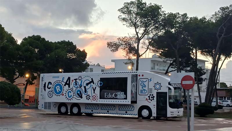 Els passats deis 21 i 22 d’octubre l’autobús de CREATIVITY de la Fundació La Caixa visità Capdepera i Cala Rajada respectivament. Amb horari escolar de 9 a 14 hores i extraescolar de 16 a 18,30 els nins i nines a partir de 7 anys van poder gaudir d’aquesta oferta educativa i lúdica que es defineix com “ … un espai-taller per a nins i nines a partir de 7 anys on es practica l’art de pensar amb les mans fent servir elements ideats per fomentar la creativitat, l’esperit emprenedor, la cooperació i la reflexió”.