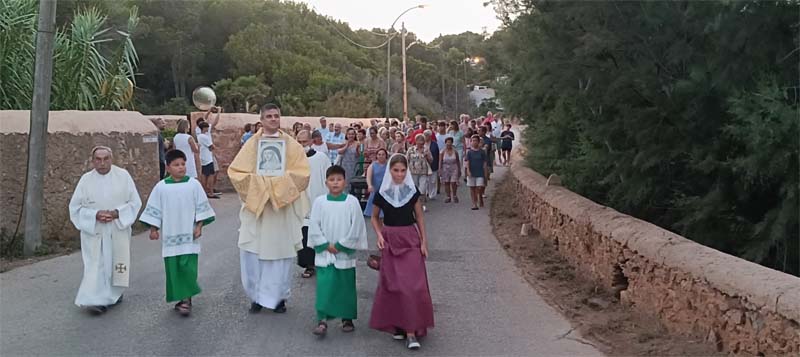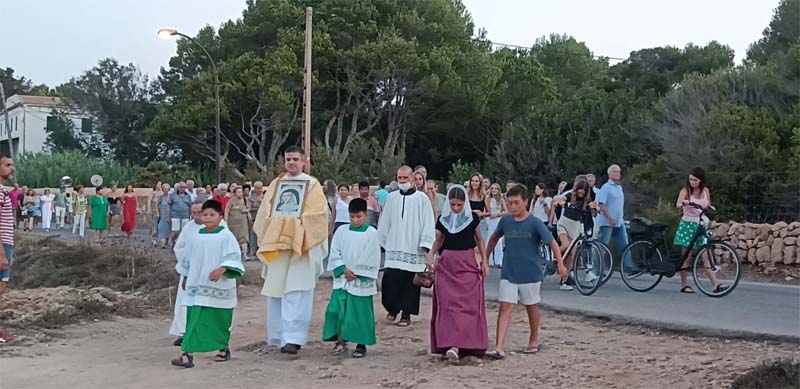 Després, continuà amb la missa, acompanyats de Ana Gotor Blanes, la nina que representava la imatge de Sor Catalina Thomàs. En acabar l’eucaristia, es venerà la relíquia de la Santa, per a continuació sortir en processó en direcció a l’avinguda dels pins (davant la mar), fins a tornar a la capella, per acabar amb un refresc, gràcies a l’ajuntament i als bunyols de les dones de la parròquia i així va acabar aquest acte tan esperat per tothom.