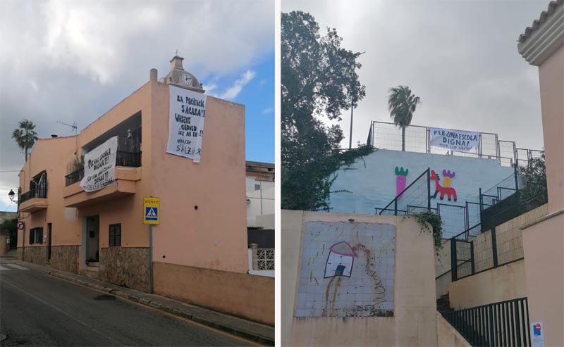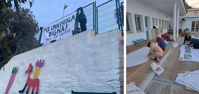 Una de les propostes va ser fer pancartes reivindicatives per penjar al centre i als domicilis particulars. Les pancartes es van fer col·lectivament al pati d’Infantil de l’escola i dissortadament, el mal temps (especialment per les darreres ventades) moltes s’han fet malbé, per això l’APIMA fa gestions per comprar material més resistent per fer-ne de noves.