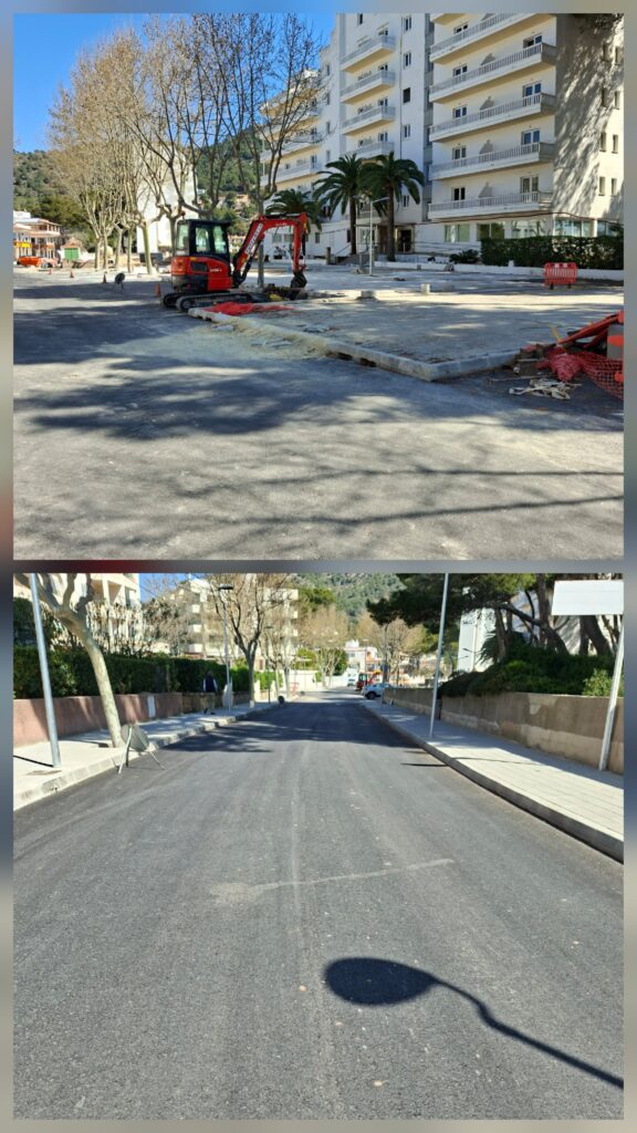 Respecte de la part de la Via Costa i Llobera les voravies ja estan quasi totes acabades i el carrer asfaltat. Les tasques ara es centren en enrajolar una secció davant l’Hotel Laguna.