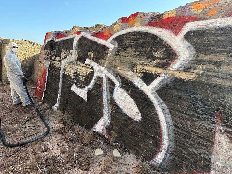 Com podeu observar, els grafits són molt difícils de llevar i certament quan espenyen un indret natural de tant valor paisatgístic i etnològic no són cap obra d’art. Són una porcada que sols omple de brutícia l’espai públic.