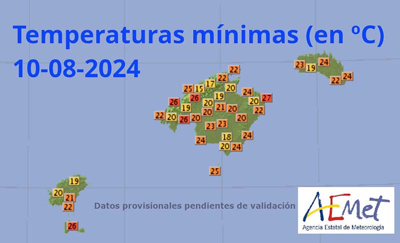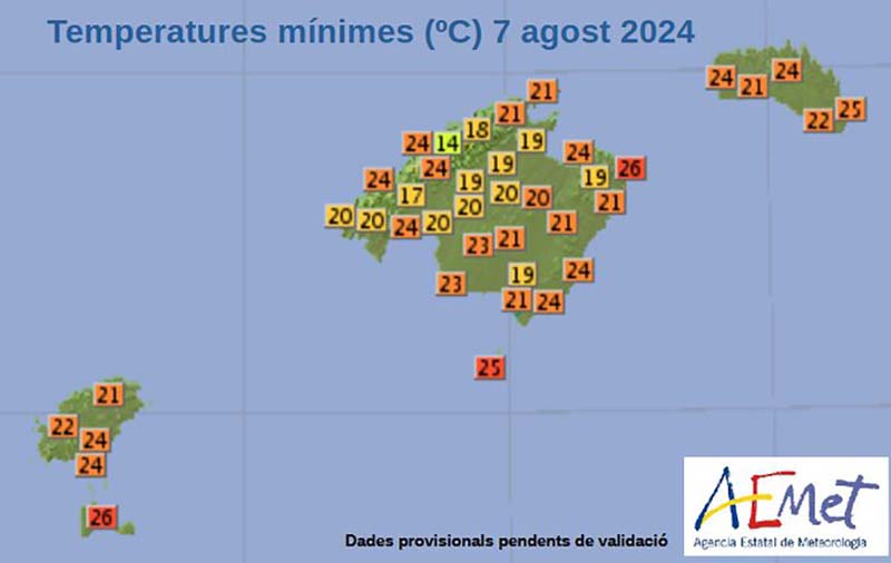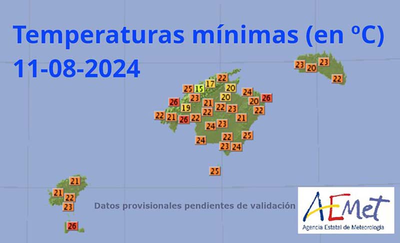 Capdepera encapçala, un altre any, el llistat de temperatures mínimes més altes: 26-27 ºC.