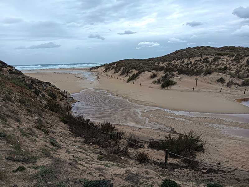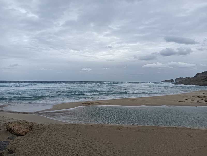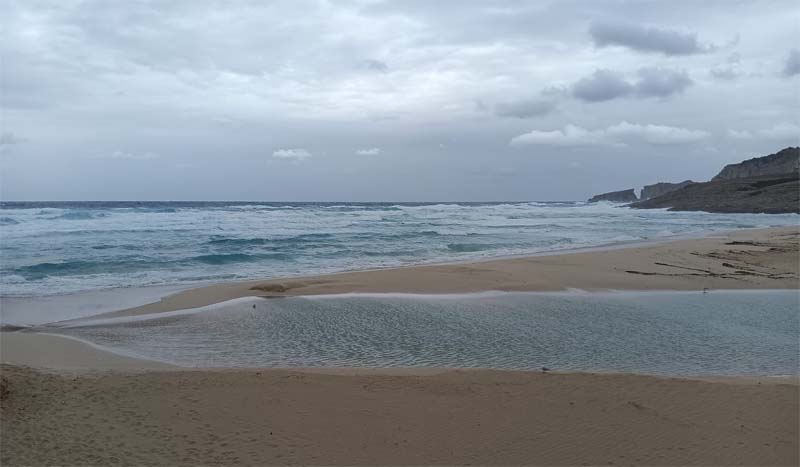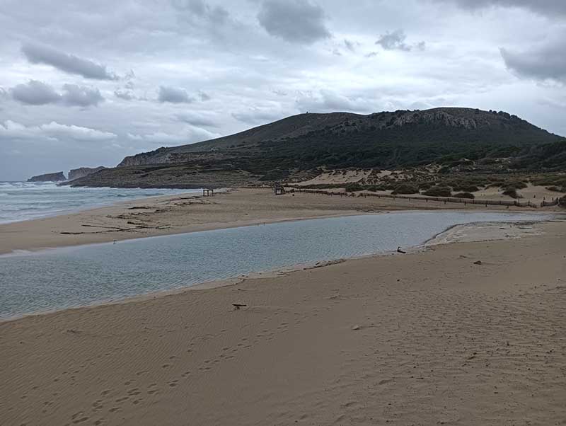 La borrasca que aquests dies de novembre afecta a Mallorca, a Capdepera ens ha dut unes pluges moderades (i necessàries), així i tot els torrents s’han reactivat i transporten l’aigua cap a la mar. En la desembocadura rompen les barreres dunars per arribar al seu destí. A Cala Mesquida, a més s’afegeix l’espectacle d’una forta tramuntana que assota la costa nord de l’Illa.