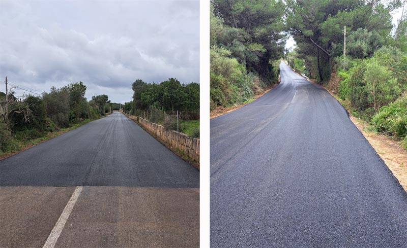 Tot i que queden alguns serrells la part de l’asfaltat està practicament acabada. S’ha actuat a bona part de la carretera, en algunes corbes i en trams llargs, però sobretot a la part final arribant a Cala Mesquida. També s’han esbrossat les voreres.