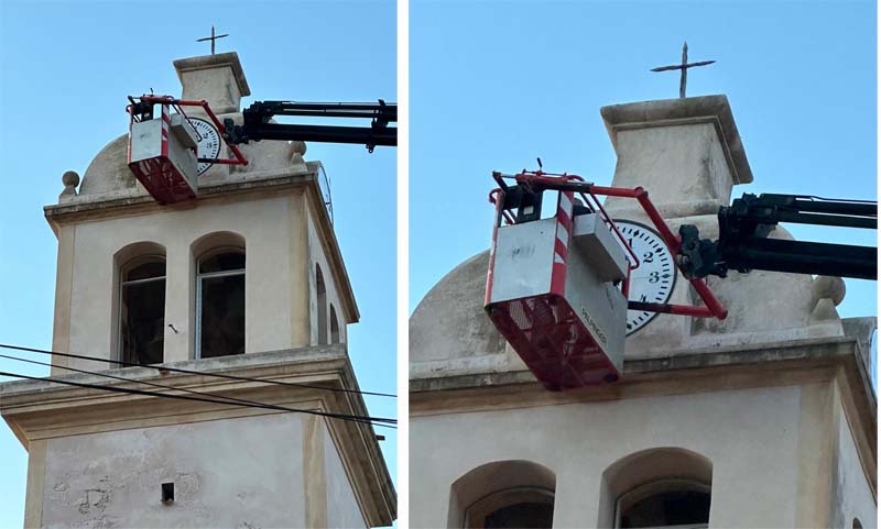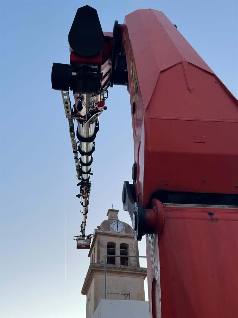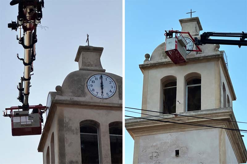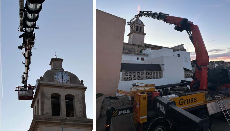 Aquesta setmana, una gran grua va ocupar l’aparcament de Can Patilla per adobar el rellotge de la torre de l’església de Capdepera que s’havia romput.