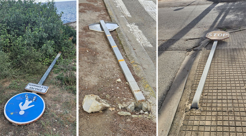 No sabem si és casualitat, però tot indica que no. La setmana passada aparegueren en terra varies senyals de trànsit verticals a la zona de Sa Pedruscada- n’Aguait.