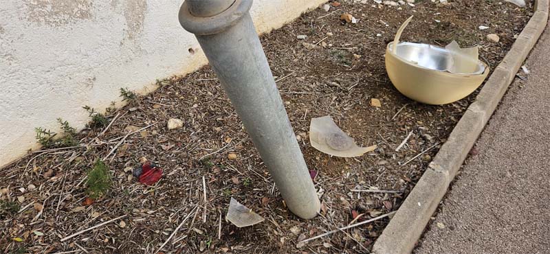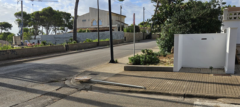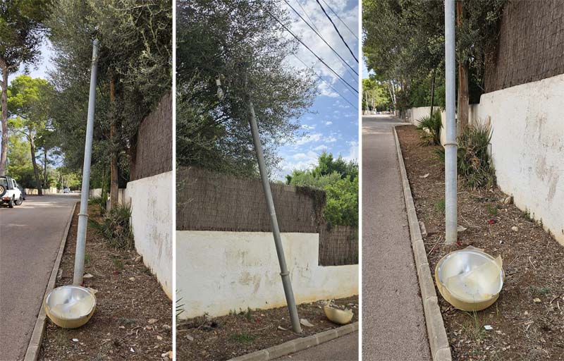 D’altra banda al carrer Arquitecte Alomar, vora el carrer Garlanda, hi ha un fanal romput, tot indica que pel xoc d’un automòbil (encara hi ha restes del intermitents en el lloc). I ara ve la pregunta ens hem de fer càrrec (l’Ajuntament i per tant els ciutadans) dels desperfectes que provoquen en el mobiliari urbà els vehicles? No ho haurien de pagar les assegurances?