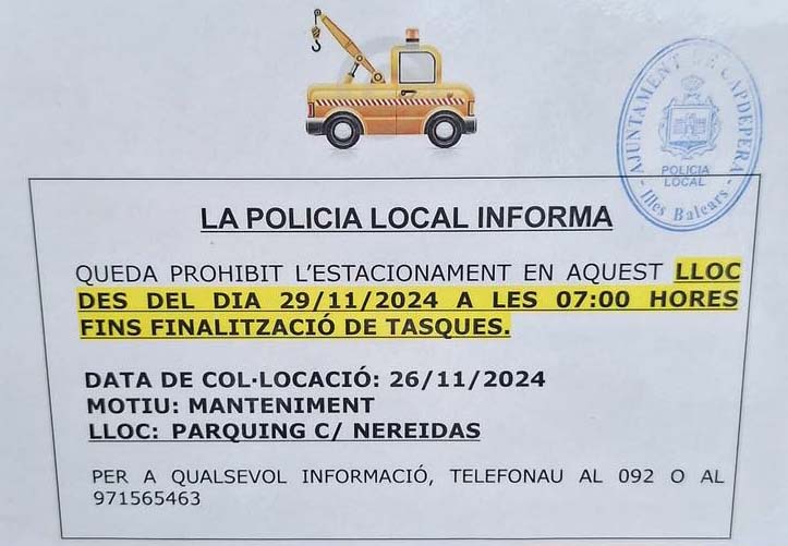 L’aparcament del carrer Nereides de Cala Rajada romandrà tancat des del divendres 29 de novembre de 2024 fins que acabin les feines de recondicionament.
