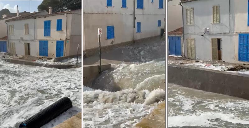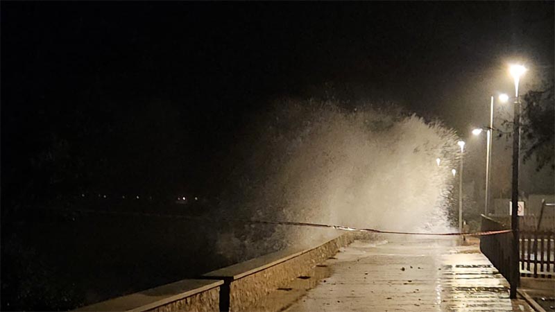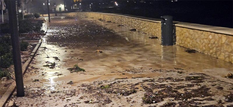 Després del fort temporal encara perduraren les fortes ones que inundaven trams del passeig marítim. La policia i Protecció Civil van senyalitzar amb cintes les zones on es prohibia el pas.