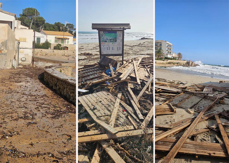 En el nostre municipi s’ha vist més afectada la costa est des del far a Canyamel. Potser la platja més danyada ha estat la de Son Moll, Sa Pedruscada i la caleta de n’Aguait, com podeu veure a les imatges que adjuntem a final de l’article.