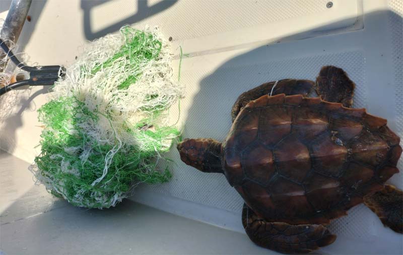 Ens han arribat aquestes imatges de la trobada amb una petita tortuga marina a les costes del Parc de Llevant. Pel que sembla una barca de recreo que pescava per la zona de Sa Mesquida-Faralló va trobar aquesta tortuga embolicada amb fils i bocins de xarxa que surava. La van treure de la mar i van comprovar que es trobava en bon estat i els fils no l’estrenyien. Així que la van desembolicar, sense gaire dificultats i donat que la tortuga no mostrava cap ferida van decidir lliurar-la a la mar observant que nedava correctament. Si hagués tingut qualque ferida o els fils l’haguessin estrènyer alguna extremitat, pensaven cridar a l’112 o al Palma Aquarium, tal com aconsellen.