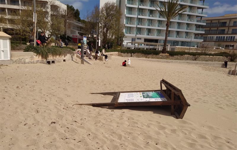També en Son Moll s’ha trobat el cartell informatiu enmig de la platja.