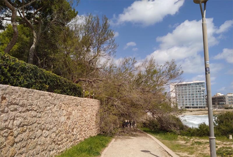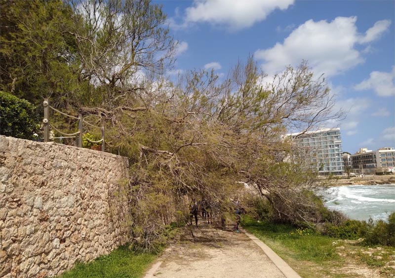 Al passeig de les Atzavares, just a la baixada de la platja de Son Moll s’ha esbrancat un dels tamarells d’un jardí particular i ha caigut en el camí