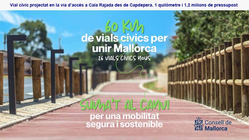 Pel que fa al vial cívic Capdepera-Cala Rajada, Llorenç Galmés ha explicat que «sabem que fa més de deu anys que Capdepera i Cala Rajada reclamava aquesta actuació, a partir del mal estat de l’asfalt de l’avinguda d’Elionor Servera. Avui és una realitat, ja que quan vàrem arribar al Consell de Mallorca poguérem comprovar que era una obra més que necessària. Però a Capdepera, enguany, també impulsarem un vial cívic entre el poble i Cala Rajada, perquè la gent pugui anar entre els dos nuclis, mitjançant la mobilitat sostenible. Es tracta d’un projecte, inclòs dins el Pla de Vials Cívics, que està en fase de redacció, en col·laboració amb l’Ajuntament i que les obres podrien començar aquest estiu, amb un pressupost d’1,2 milions d’euros».